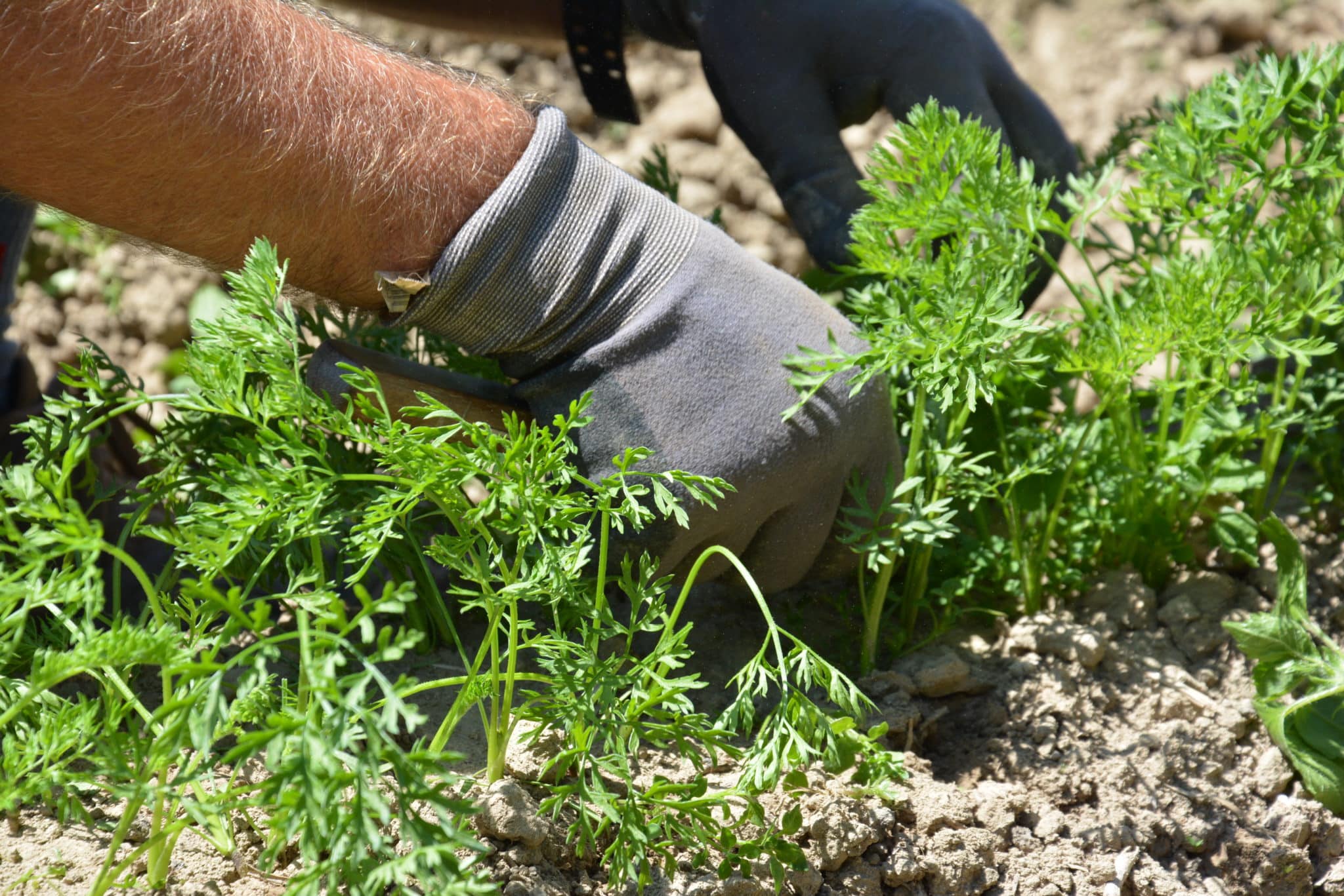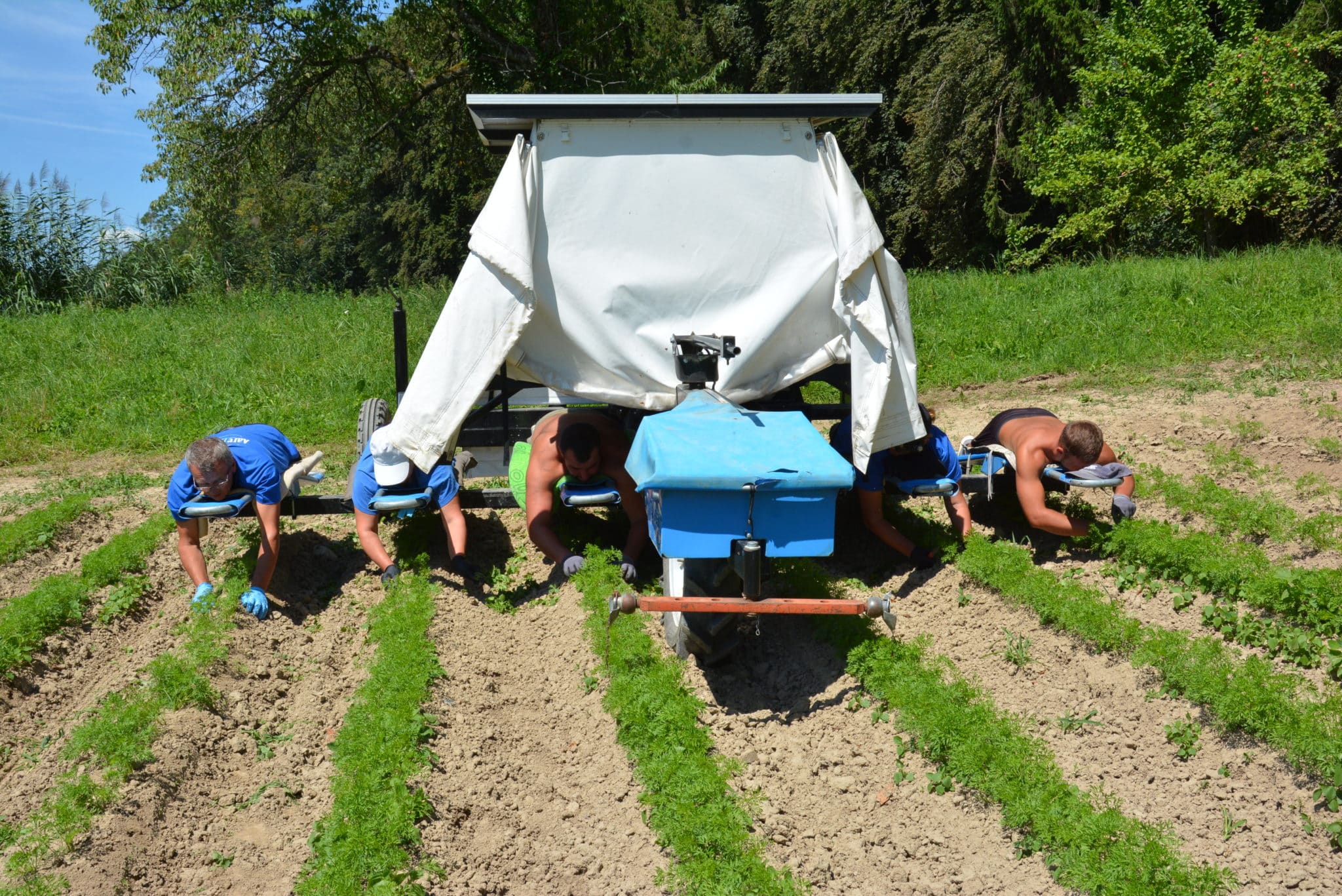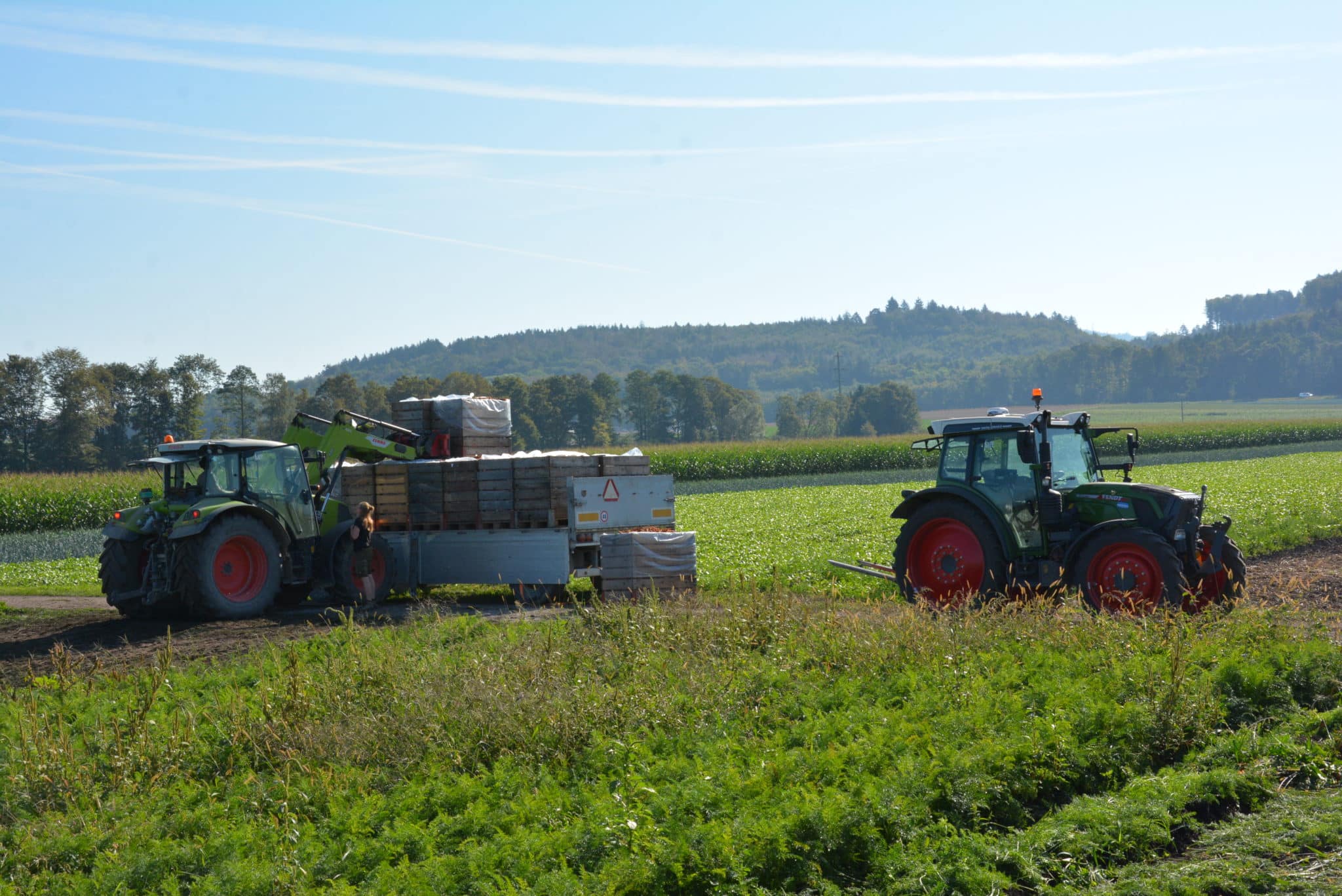 70 hectares : voilà la surface totale exploitée par Aare-Bio. Pendant les mois d’été, les trois responsables emploient 20 collaboratrices et collaborateurs. Ils produisent des légumes bio de plein champ et des légumes de garde, principalement des courges, carottes, salades, oignons primeurs et haricots grimpants. Avec la variété de haricot ProSpecieRara « Blauhilde », les trois producteurs apportent aussi une contribution majeure à la préservation de variétés anciennes. Enfin, leur activité englobe également la culture des céréales et l’élevage de vaches mères.
